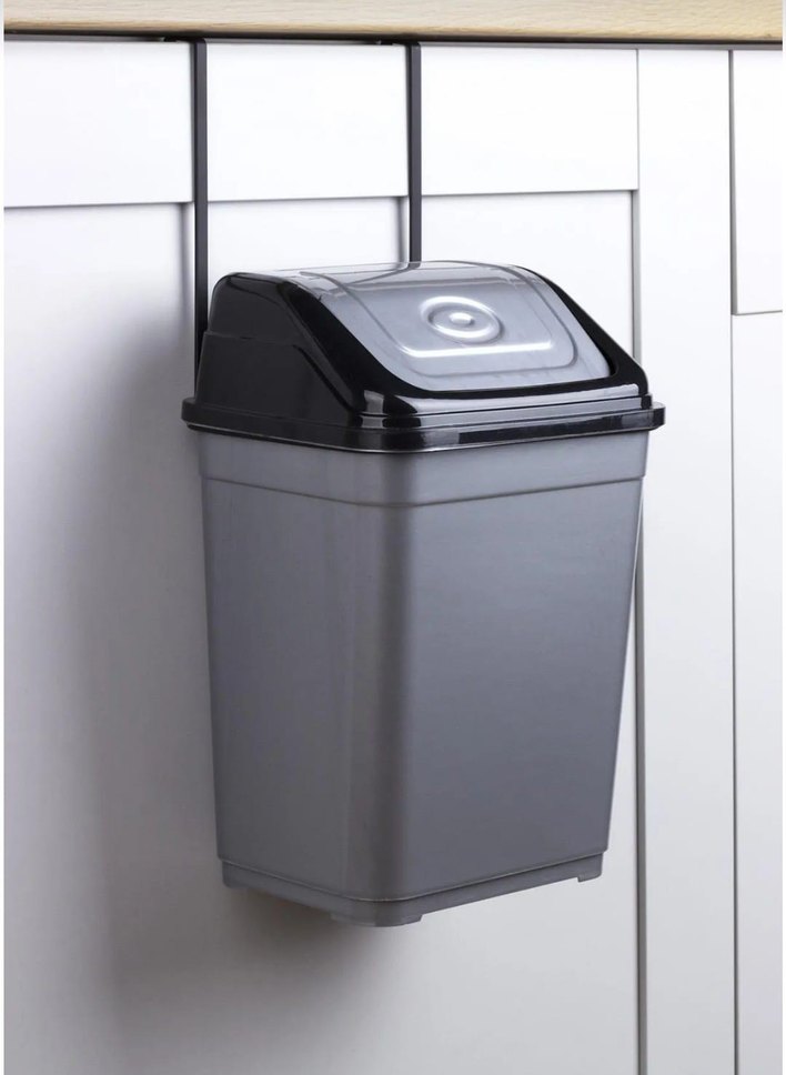 Gri renkli askili , salıncak kapaklı çöp kutusu. Mutfak ve banyo için kullanışlı tasarım. ️