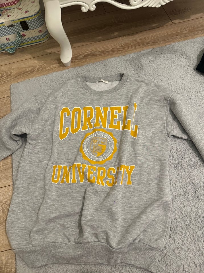 Gri renkli, Cornell University baskılı, uzun kollu, yuvarlak yakalı ve bol kesim sweatshirt. Yumuşak ve sıcak kumaştan üretilmiştir.