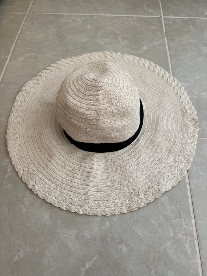 Geniş kenarlı, dantel detaylı bohem tarzda kadın şapkası. Sentetik kumaştan, gri tonlarında retro ve hippie görünüme uygun.