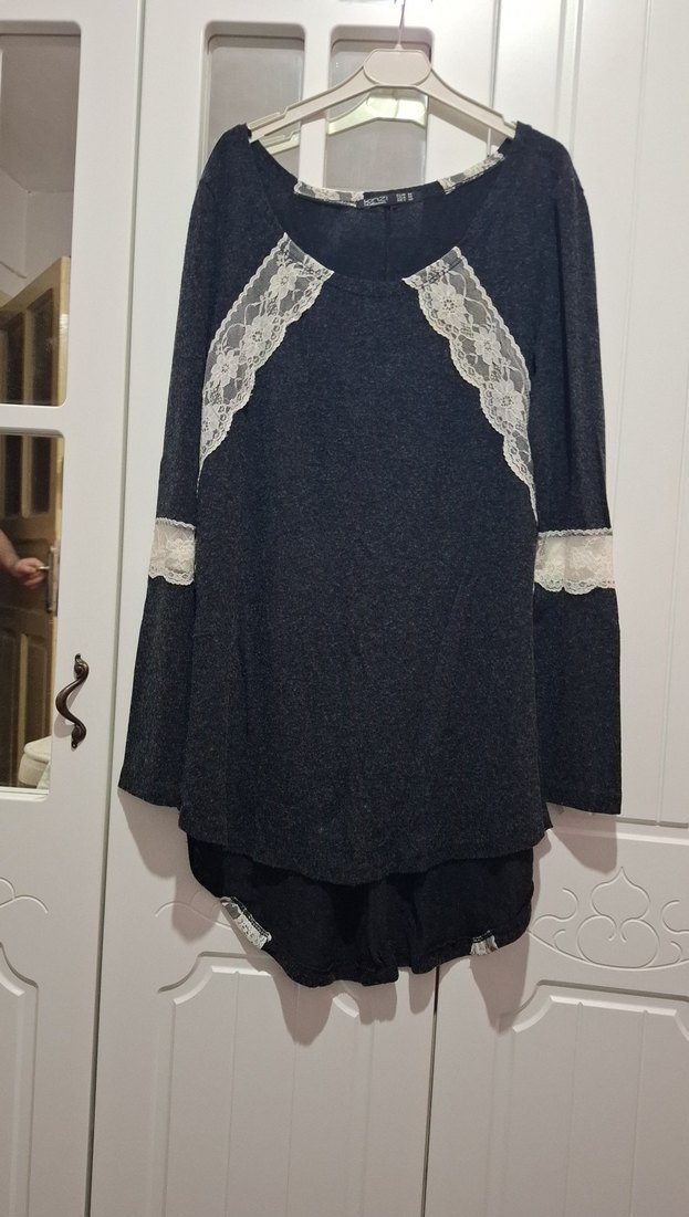 Gri renkli, uzun kollu hamile triko tunik. Ön ve kollarda dantel detayları bulunur. Crew yaka ve bol kesimdir, rahat kullanım sağlar.