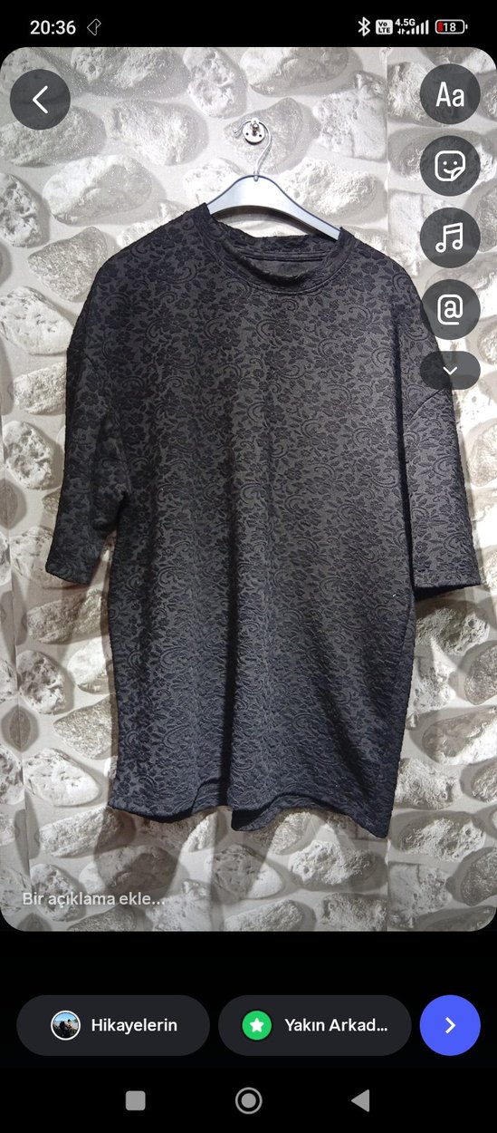 Geniş kesim, yuvarlak yaka ve kısa kollu bu sentetik kumaştan ve ince dantel desenli. Uzun boyu ve gri rengiyle günlük kullanıma uygun, gotik tarzda şık bir parça.