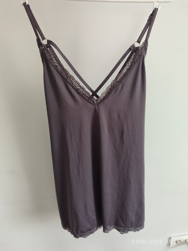 Gri Dantel Detaylı V Yakalı İnce Askılı Atlet