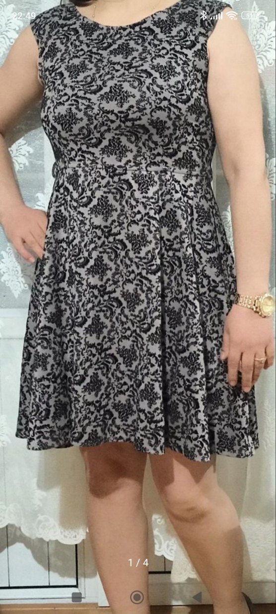 Gri renkli, dantel detaylı ve yılan desenli bu straplez, vücuda oturan elbise, gotik tarzıyla parti için uygundur.