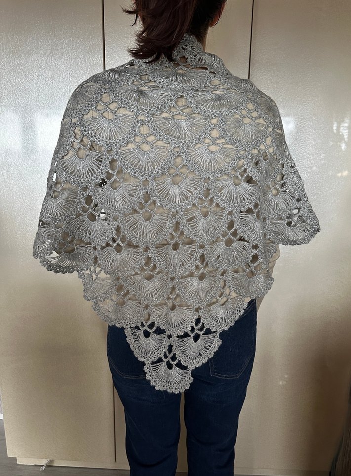 Gri renkli, dantel detaylı örgü kadın şal, rahat ve bohem tarzda şıklık sunar. Yumuşak dokusuyla her kombine zarif bir dokunuş katar.