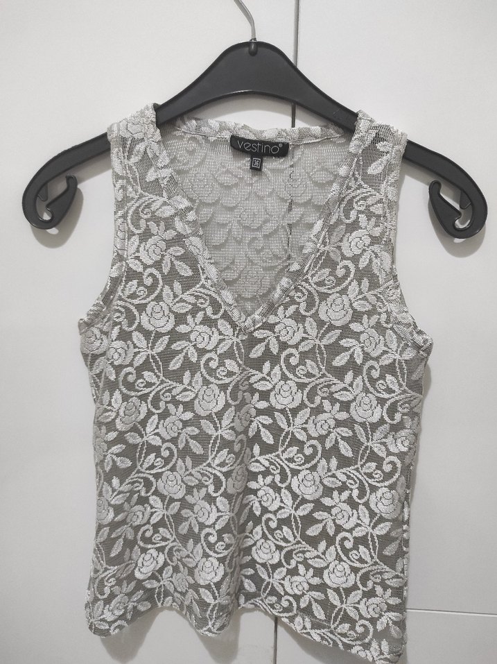 Gri Dantel V Yaka Kolsuz Kadın Bluz