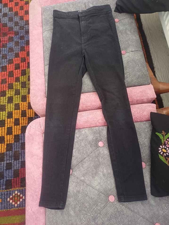 Gri renkte, elastik bel detaylı, dar kesim ve normal boyda denim kadın pantolon. Günlük kullanıma uygun sade ve rahat bir tasarım sunar.