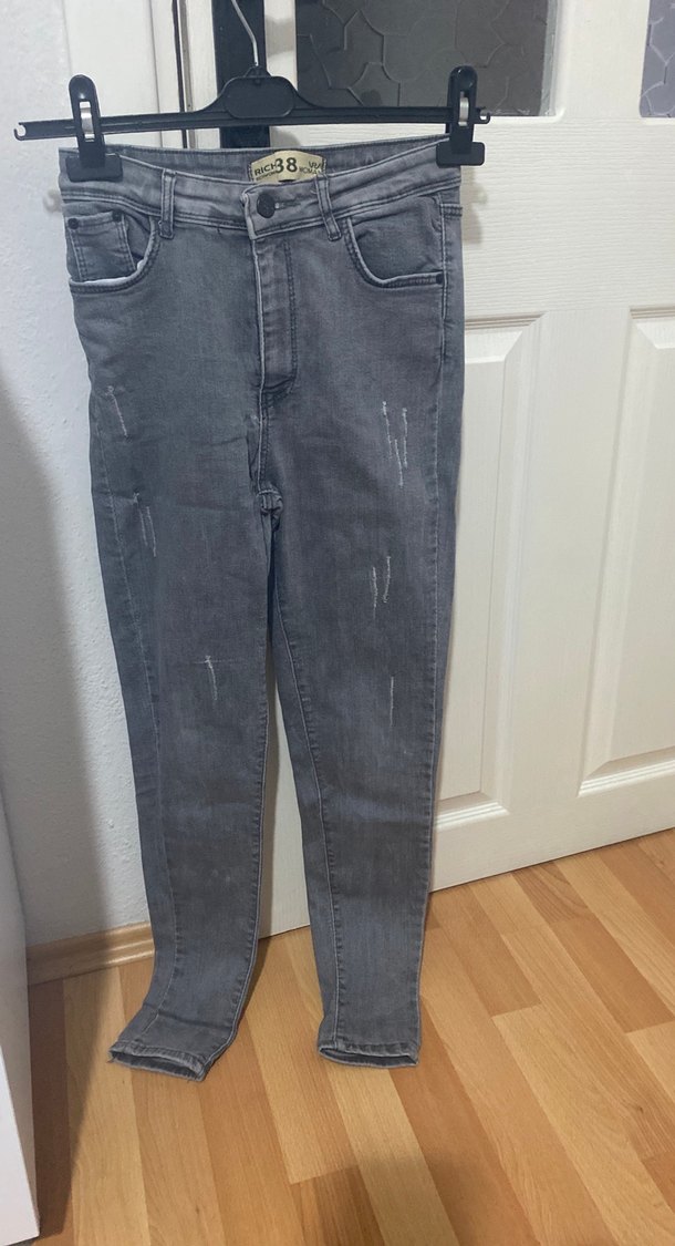Gri renkte, dar kesim midi uzunluğunda denim jean. Hafif yıpranmış detaylarla günlük sokak stiline uygun, zahmetsiz şıklık katıyor. 60 kiloya uygundur dar pantolon
