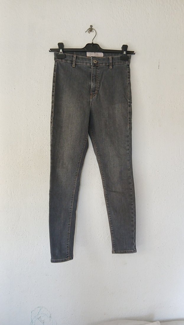Denim kumaştan yapılmış, dar kesim ve midi boyda gri kadın kot pantolon. Rahat ve şık sokak stili için ideal.