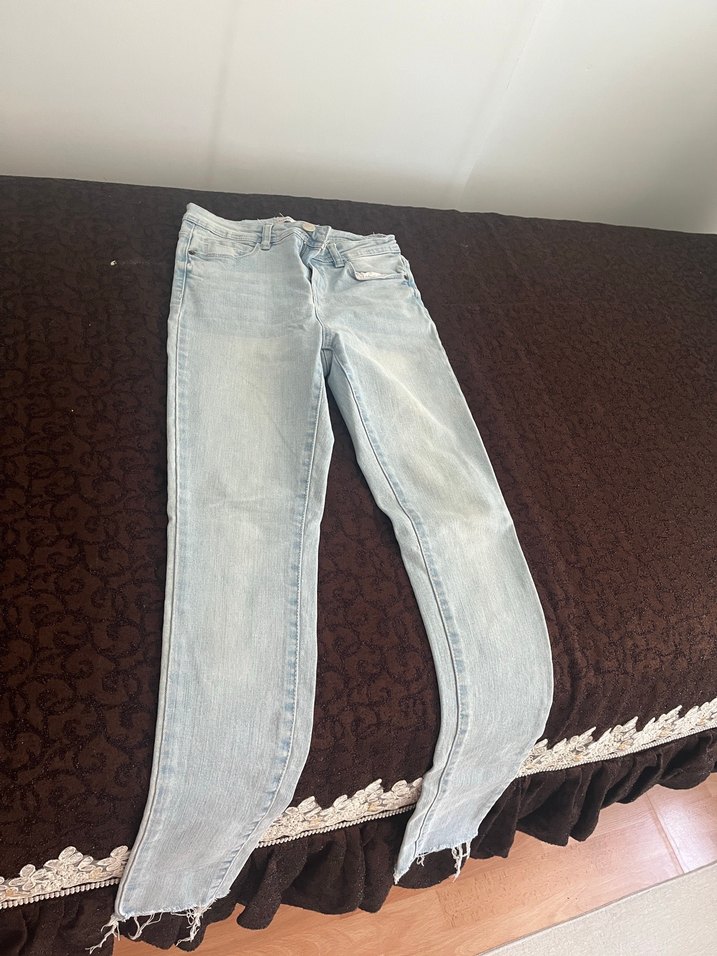 Gri renkte, dar kesim midi boy kadın kot pantolon, gündelik kullanım için rahat ve sade normcore tarzda tasarlanmıştır.