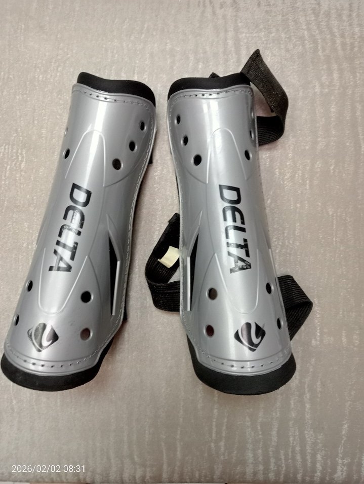Gri renkli, baskılı desenli ve Velcro bantlı dayanıklı kauçuk motosiklet dizlikleri. Üzerinde 'DELTA, 2026/02/0208:31' yazısı bulunur. ️