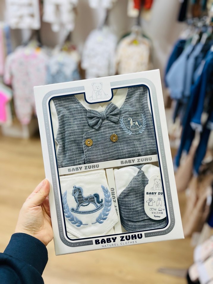 Gri Denim Baskılı Bebek Erkek hastane çıkışı