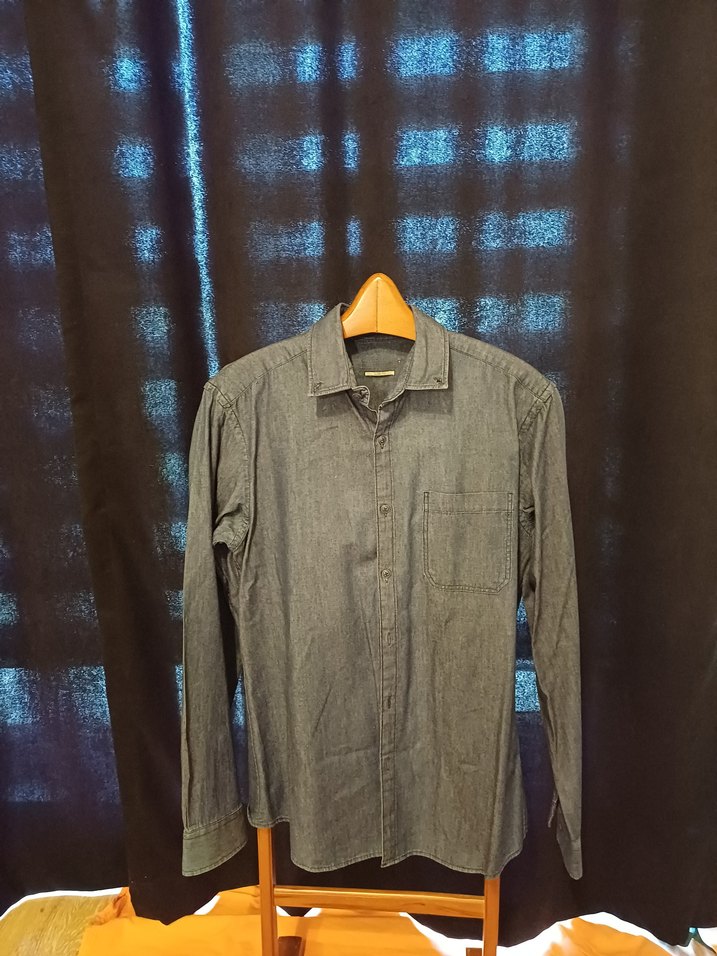 Uzun kollu, yakalı ve düğmeli ön kısmı ile erkek gömleği. Yumuşak denim kumaştan, regular fit ve sade gri renkte, günlük rahat kullanım için uygun.