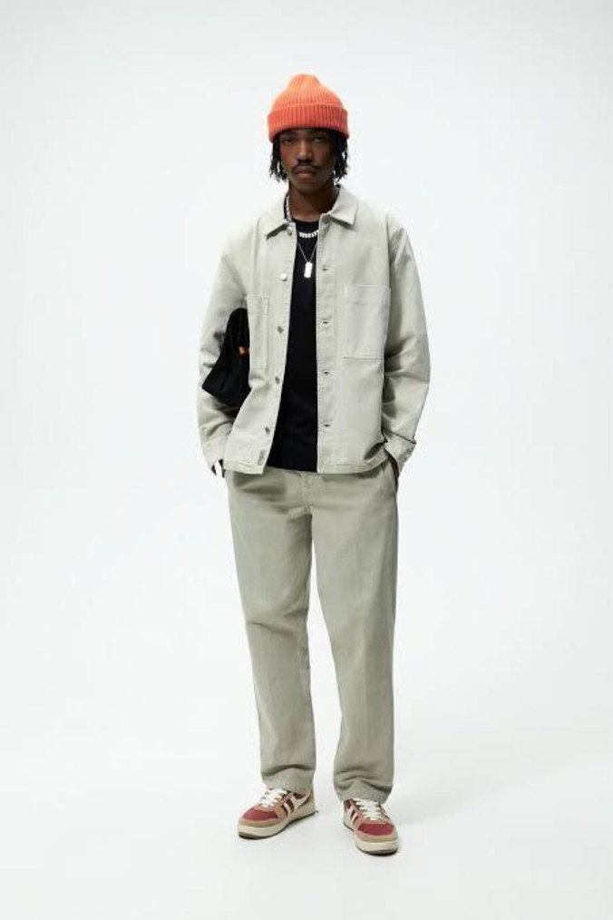 Gri denim erkek , normal boyda, düğmeli ve notched lapel yakalıdır. Uzun kollu, rahat kesim ve şık görünümlüdür.