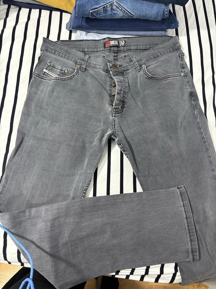 Gri renkli, belinde tokalı detaylı, orta boy kesime sahip dar kesim denim kot pantolon. Günlük sokak stili için uygundur.