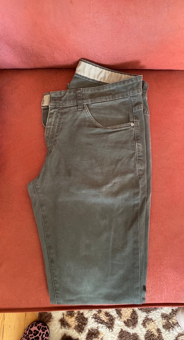 Gri renkte, bel kemerli erkek denim pantolon. Normal boy ve rahat kesimlidir, günlük kullanıma uygundur.