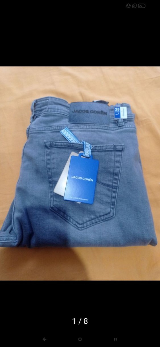 Jacob Cohen markalı gri denim pantolon, normal kesim ve baskılı desenle günlük rahat ve şık bir stil sunar.
