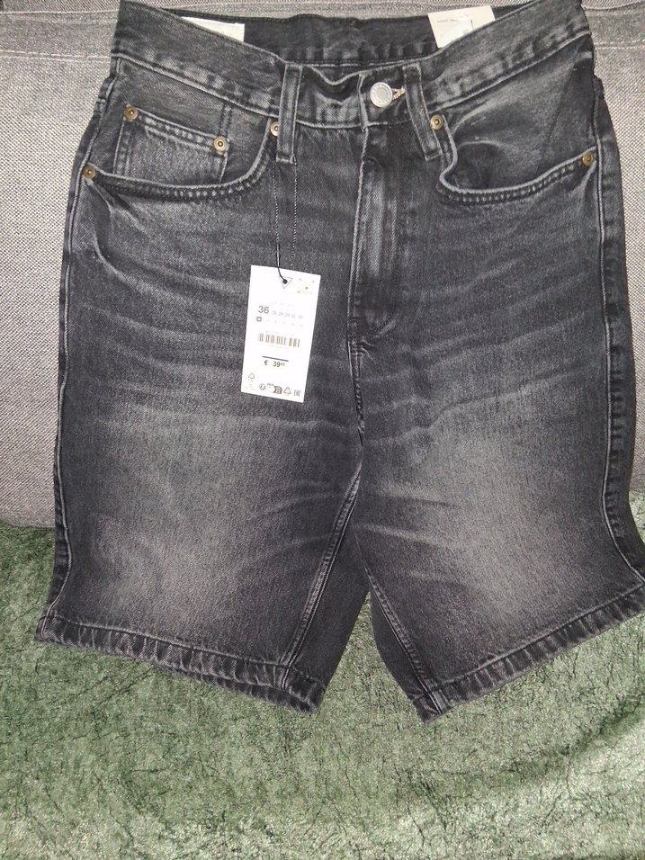 Gri renkli, bol kesim denim erkek şort. Günlük kullanıma uygun, desen içermeyen, rahat ve şık bir tarz sunar.