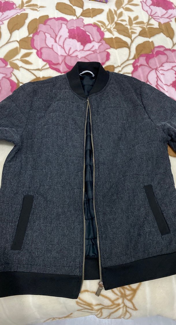Gri denim kumaştan, fermuarlı, yakası kesik ve uzun kollu kadın ceket. Normal boy ve rahat kesimle günlük kullanıma uygundur.