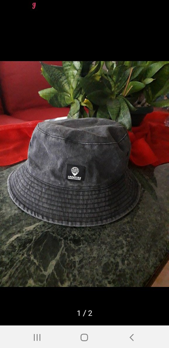 Gri denim kumaştan yapılmış, küçük logo detaylı Erkek bucket şapka. Sokak stili ve rock punk havası sunar.