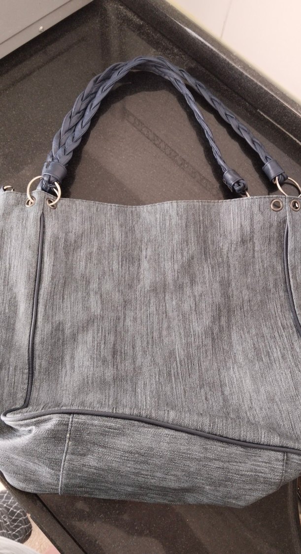 Gri denim kumaştan, tokalı ve örgü saplı kadın çantasıdır. Günlük kullanıma ve bohem sokak stiline uygundur.