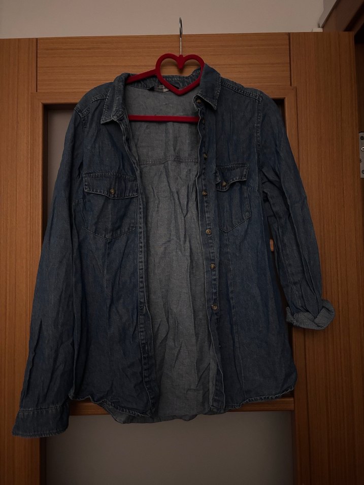 Gri denim kumaştan, düğmeli, uzun kollu, notched yaka ve bol kesim kadın gömleği. Günlük kullanıma uygun rahat stil sunar.