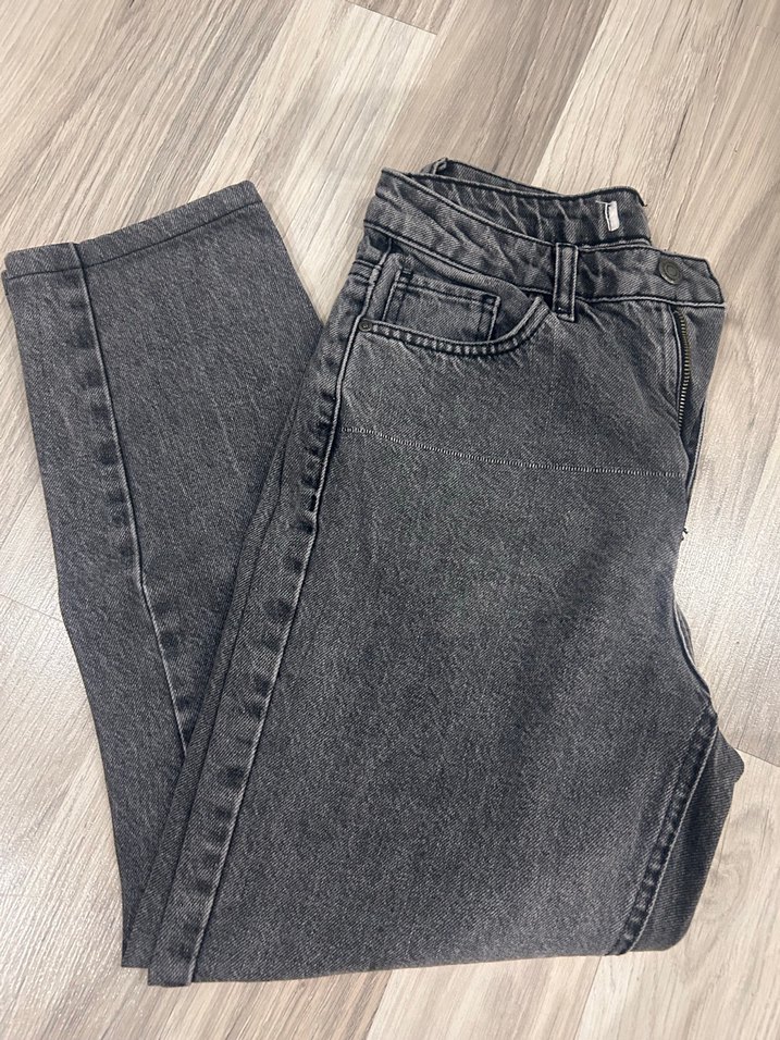 Tekliflere açığım. Füme renkte, rahat kalıplı mom jean. 36 bedene uyumlu. Rengi solmadı, kumaşı yumuşak ve esnek. Gözle görülür bir defosu yok fakat aldığımda ilk fotoğraftaki çekilmiş görüntü vardı. Temiz kullanıldı, hemen giyilebilir. Günlük kombinlerde çok güzel duruyor. ☺️