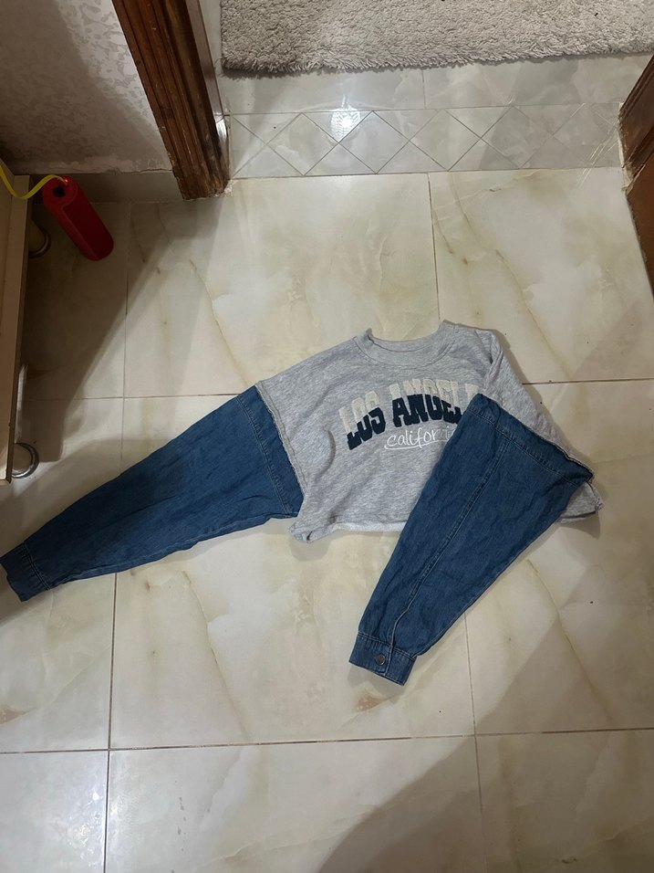 Gri Denim Kollu Los Angeles Sweatshirt