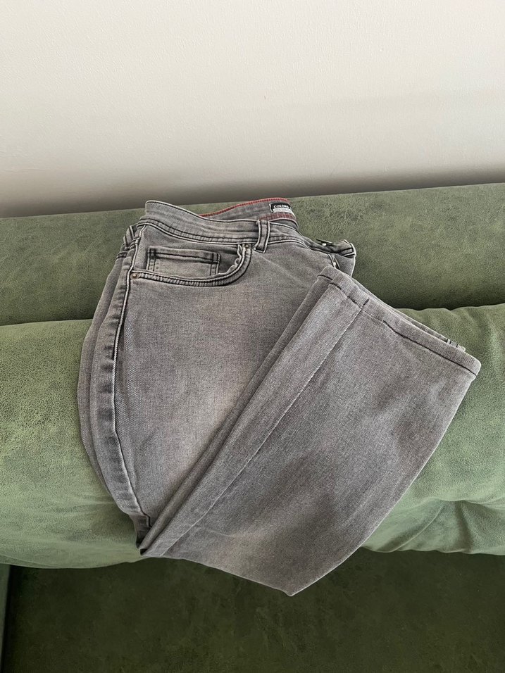 Gri renkli denim kot pantolon, 31 beden olup esnek kumaşı vardır. Defosu fotoda bellidir içerden güzel dikiş yama yapıldı giyilir. Boy 97 cm paça genişlik boru kesimdir