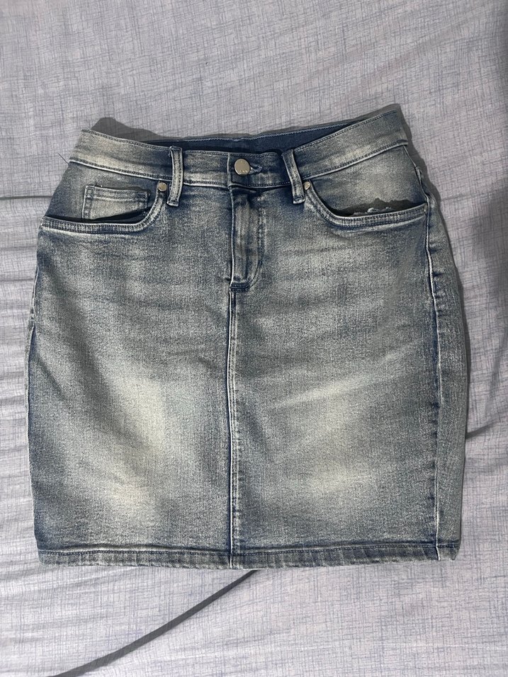 Gri renkli, normal uzunlukta, sade desenli, fitted kesim denim mini etek, günlük rahat kullanıma uygundur. Yurt disindan geldi