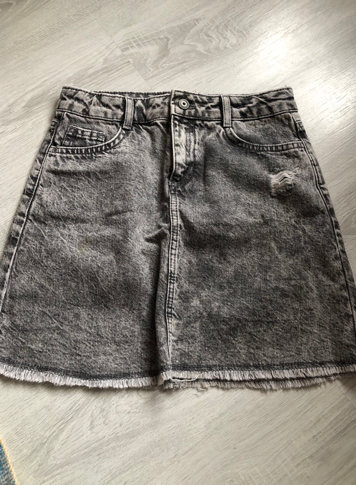 Kemerli, fitted kesim gri denim mini etek, hafif yıpratma detaylı. Grunge punk tarzında, günlük sokak giyimi için uygun.