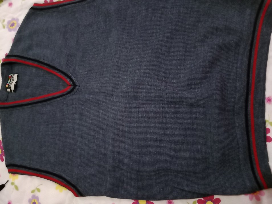 Gri denim kumaştan, V yakalı süveter. Fitted kesim ve normal boyda, günlük ve sokak tarzına uygun.