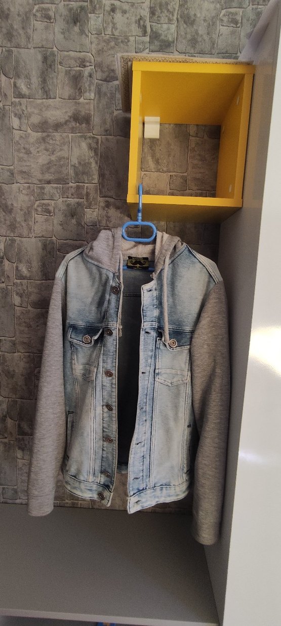 Gri Denim ve Kapüşonlu Sweatshirt Kombinli Ceket