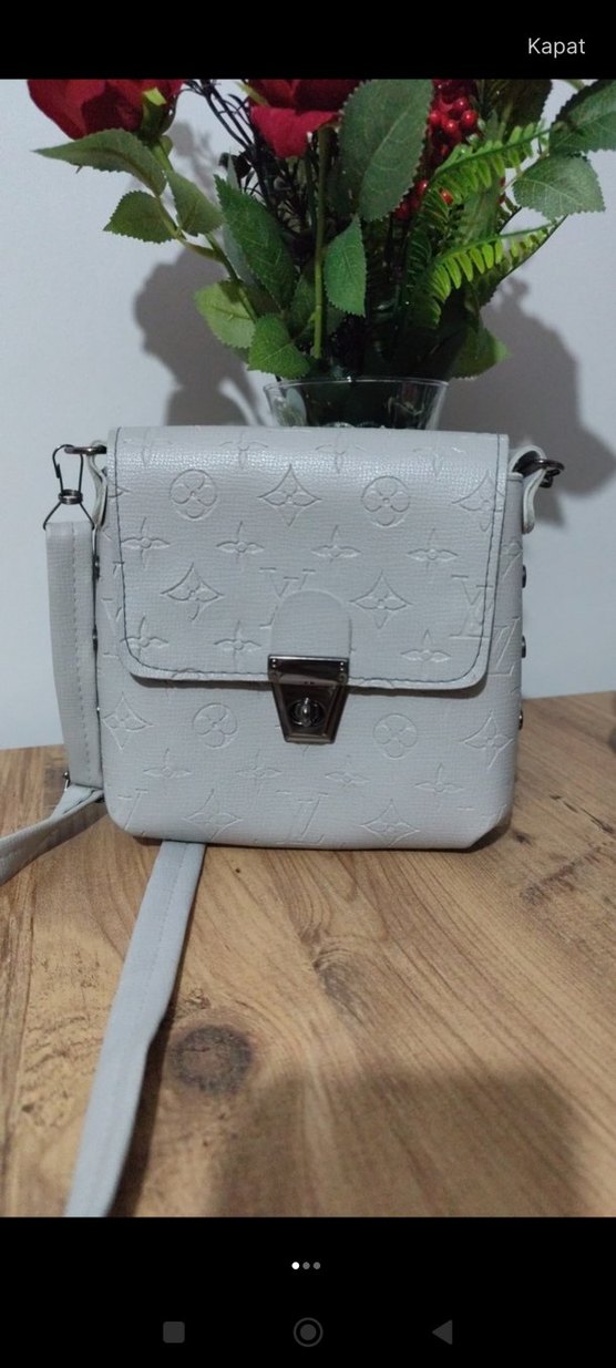 Gri Deri Baskılı Kadın Çanta