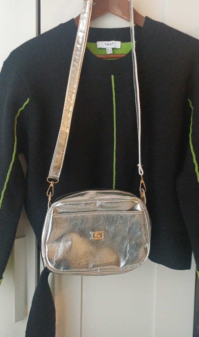 Gri deri malzemeden yapılmış, tokalı ve desen içermeyen biker tarzı kadın çantasıdır. Günlük kullanıma uygundur ve Paris etkisi taşır.