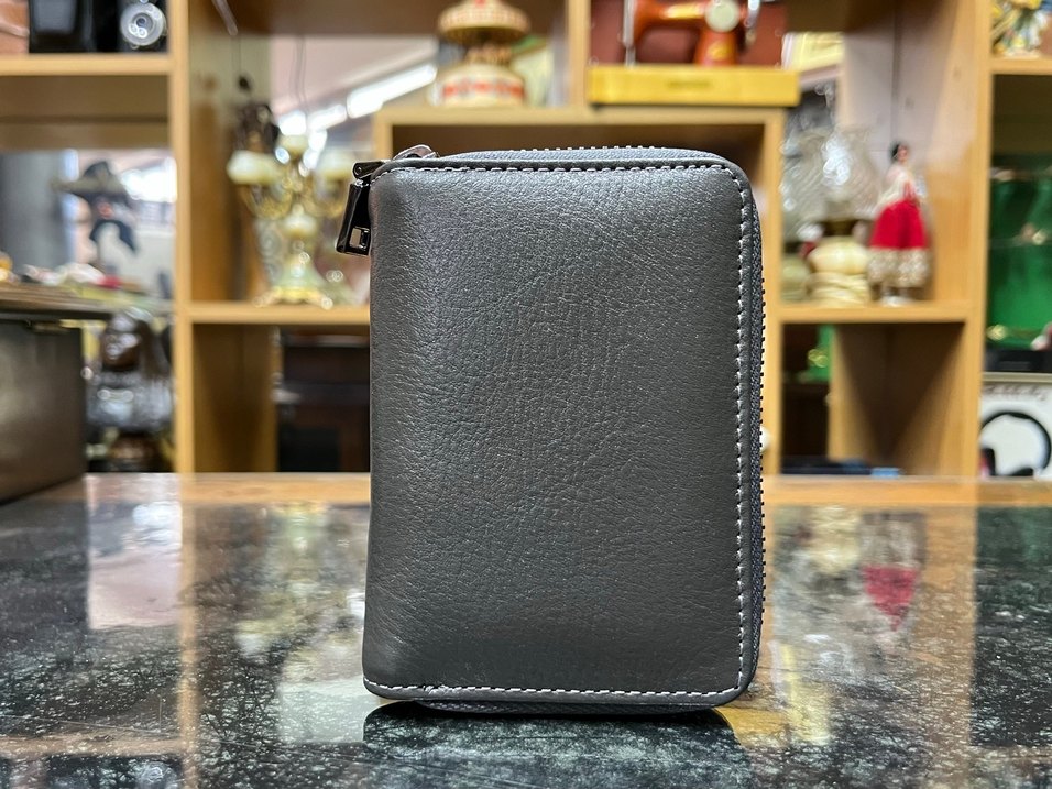 Gri Deri Fermuarlı Erkek Cüzdanı