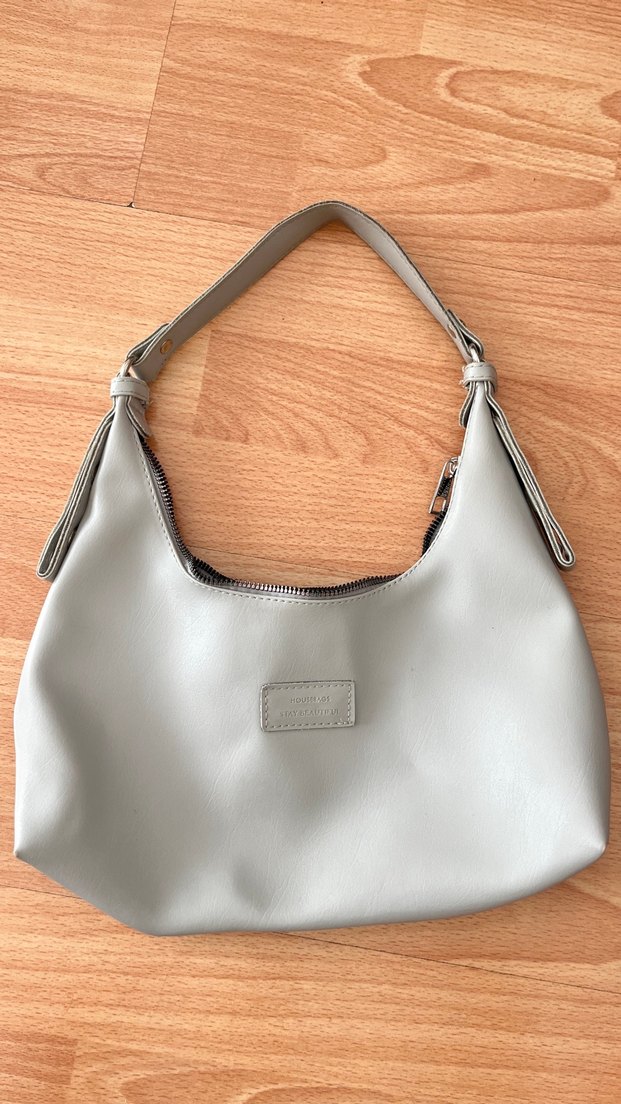 Gri deri, fermuarlı kadın çantası, minimalist ve desensiz tasarımıyla günlük kullanıma ve sokak stiline uygundur.