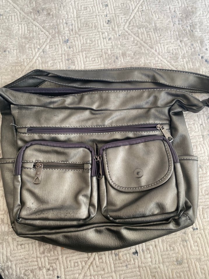 Gri deri kadın çanta, çoklu fermuarlı ceplerle günlük kullanıma uygun sokak stili sunar. Merhaba original deridir suni değil bir kaç defo var fotoğraf koydum o yüzden uyguna vereceğim
