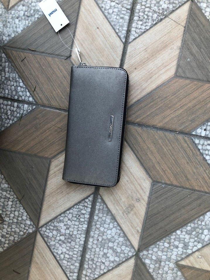 Gri deri clutch cüzdan, fermuarlı kapanışa sahip, minimalist tasarımıyla genç ve trend sokak stili için uygundur.