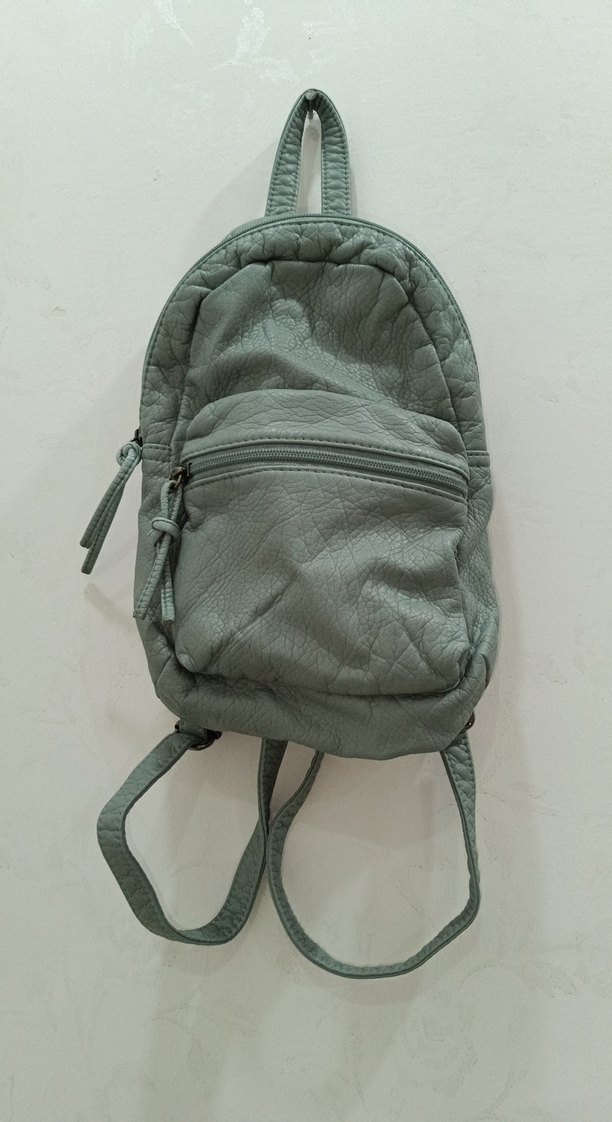 Gri Deri Fermuarlı Kadın Sırt Çantası