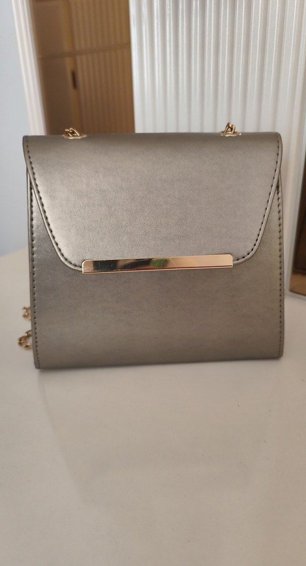 Gri deri kadın çanta, tokalı kapak ve altın detaylı modern klasik tasarıma sahiptir. Günlük kullanıma uygun, Paris esintili bir şıklık sunar.