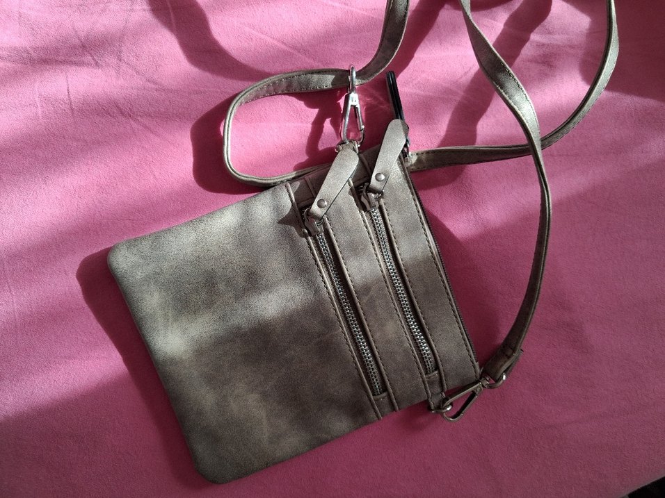 Gri deri kadın çanta, fermuarlı tasarıma sahip, günlük kullanıma uygun sade ve desen içermeyen Paris tarzı.