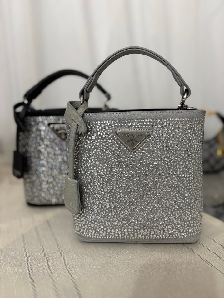 Gri A kalite Prada taşlı çanta