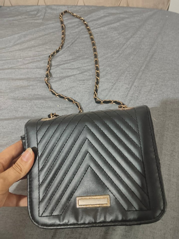 Gri Deri Kadın Çanta Zincir Askılı