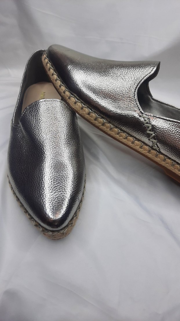 Gri Deri kadın Espadril gümüş desen