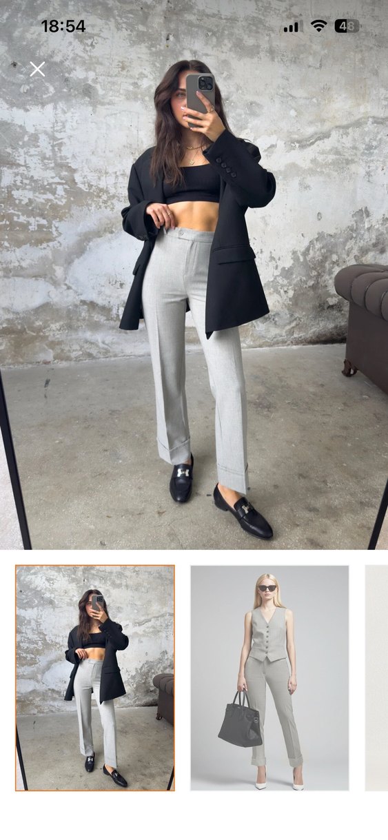 Bu gri pantolonlar, normal kesim ve midi boyda olup ofis kullanımı için uygundur. Desensiz tasarımıyla zahmetsiz şıklık katar.