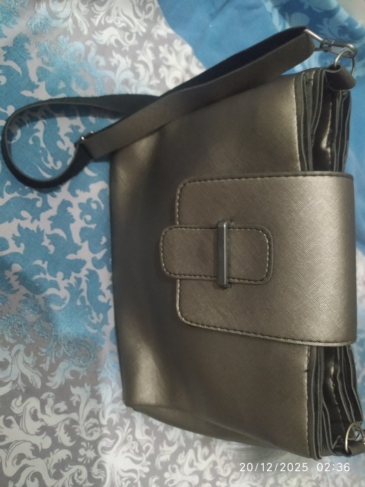 Gri deri kadın çantası, tokalı kapak ve minimalist tasarıma sahiptir. Sokak stiline uygun, gündelik kullanıma ideal, desen içermeyen şık bir modeldir.