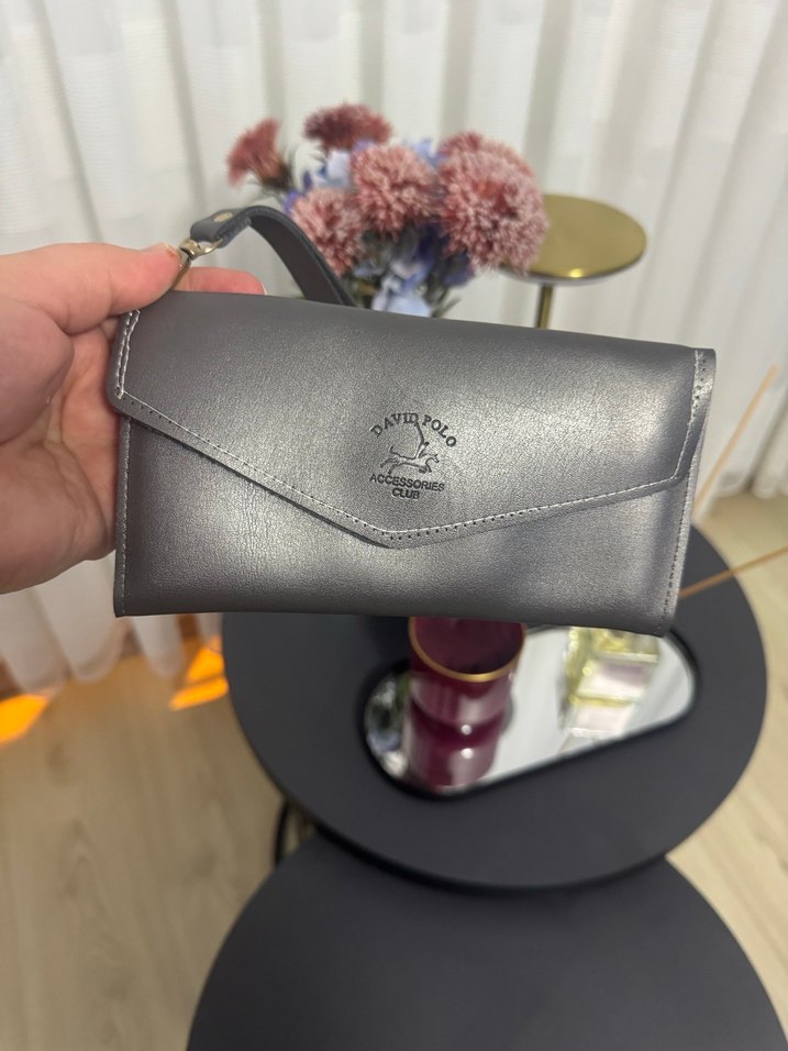 Gri Deri Kadın Portföy Cüzdan