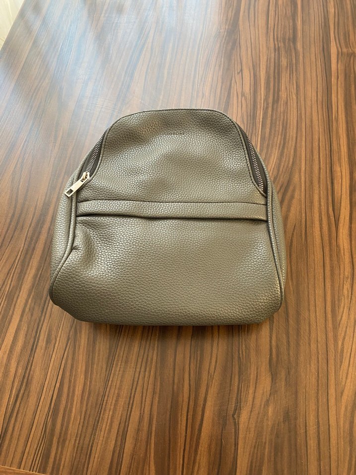 Gri Deri Kadın Sırt Çantası
