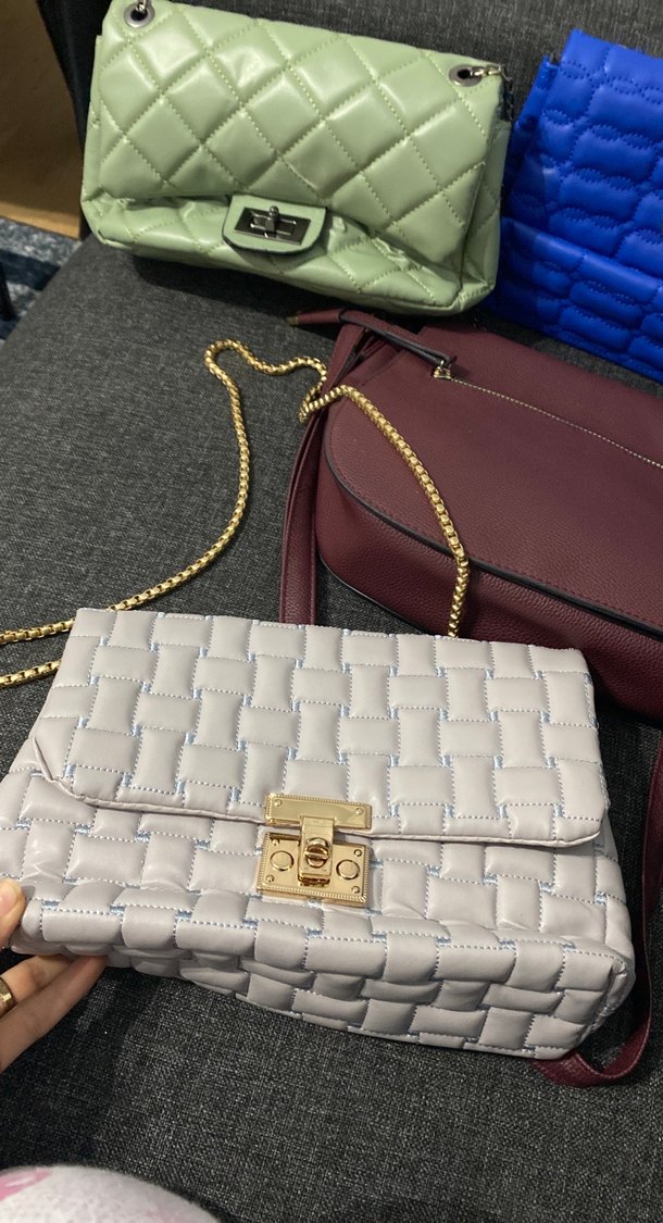 Gri deri, kemerli , günlük kullanıma uygun altın zincir askılıdır. Hepsi birlikte satılıktır tek almak isterseniz sayfama bakabilirsiniz