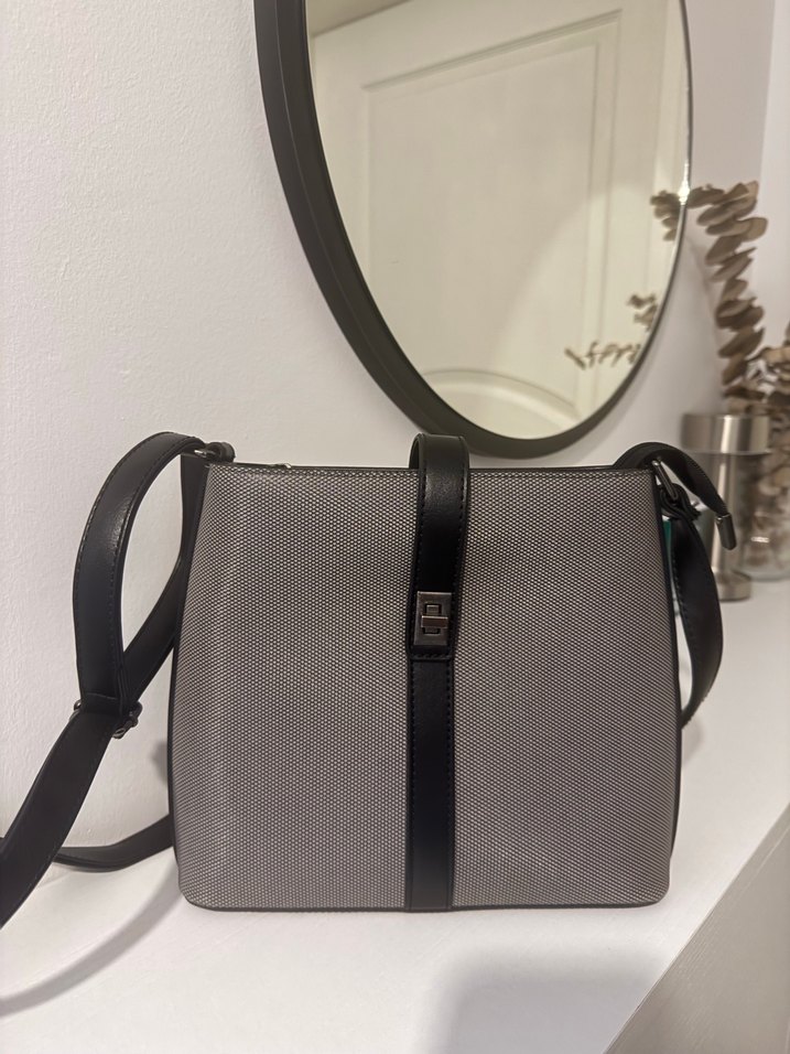 Minimalist gri deri kadın çanta, kemerli tasarımı ve çağdaş stiliyle günlük kullanıma uygun, klasik zarafet sunar. Çok az kullandım tertemızdir.